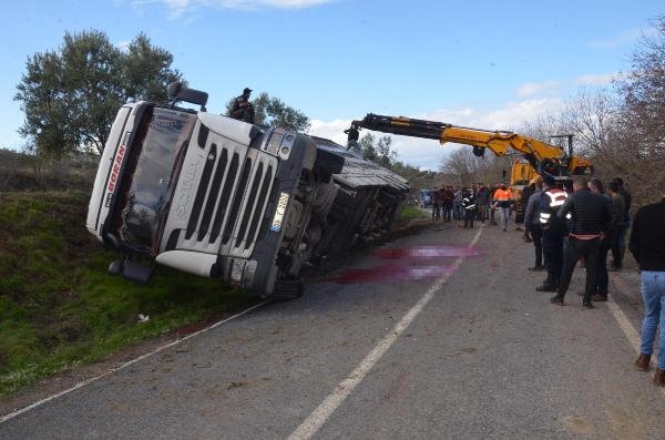 AYDIN'ın Yenipazar ilçesinde, devrilen büyükbaş hayvan yüklü TIR'ın şoförü Halil Solak (48) yaralandı. TIR'ın dorsesindeki 20 büyükbaş hayvan ise jandarma ve itfaiye ekipleri tarafından tahliye edildi.