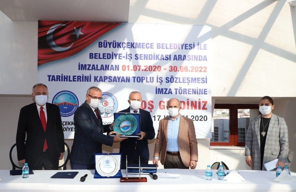 01.07.2020 - 30.06.2022 tarihleri arasında yürürlükte olacak toplu iş sözleşmesi Büyükçekmece Belediye Başkanı Dr. Hasan Akgün ve Belediye - İş Sendikası İstanbul 1 Nolu Şube Başkanı Sezai Akyürek tarafından imzalandı.