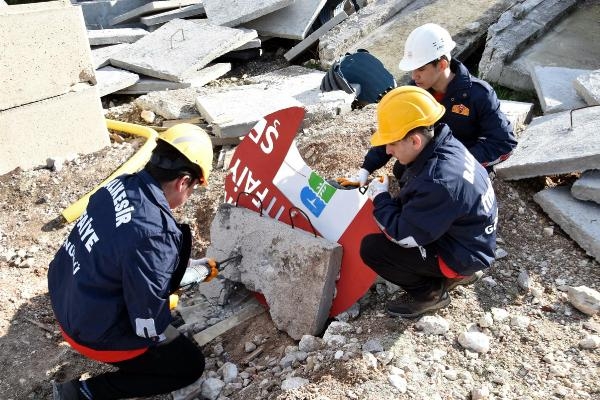 BALIKESİR Büyükşehir Belediyesi İtfaiyesi, "Okulum Afete Hazır" projesi kapsamında lise öğrencileriyle birlikte gerçeğini aratmayan bir tatbikat gerçekleştirdi. Öğrencilere tatbikatta, Köpekli Yıldız Arama Kurtarma Birliği'nin üyesi arama kurtarma şampiyonu Ateş de eşlik etti.
