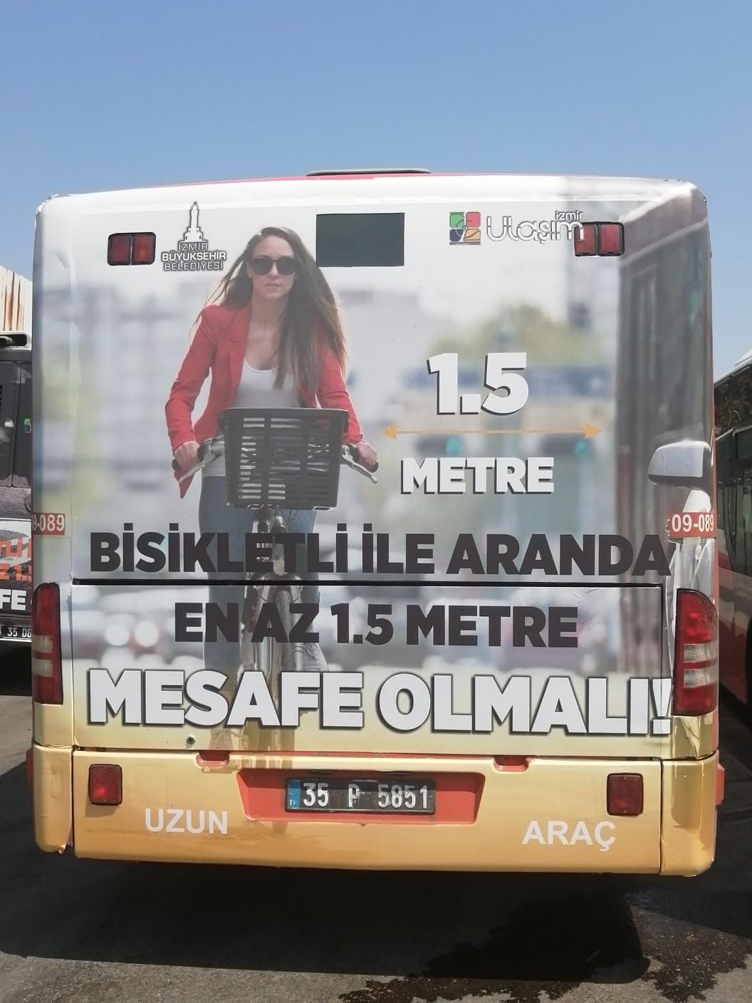 Kentte bisiklet kullanımını artırma çalışmalarını sürdüren İzmir Büyükşehir Belediyesi, "trafikte bisiklet bilincini" güçlendirmek için de farkındalık kampanyaları düzenliyor. Bu doğrultuda 30 ilçedeki dijital ekranlarda ve billboardlarda motorlu taşıt sürücülerine yönelik mesajlara yer verilirken, 15 ESHOT otobüsünün arka cephelerine de özel tasarımlar giydirildi.