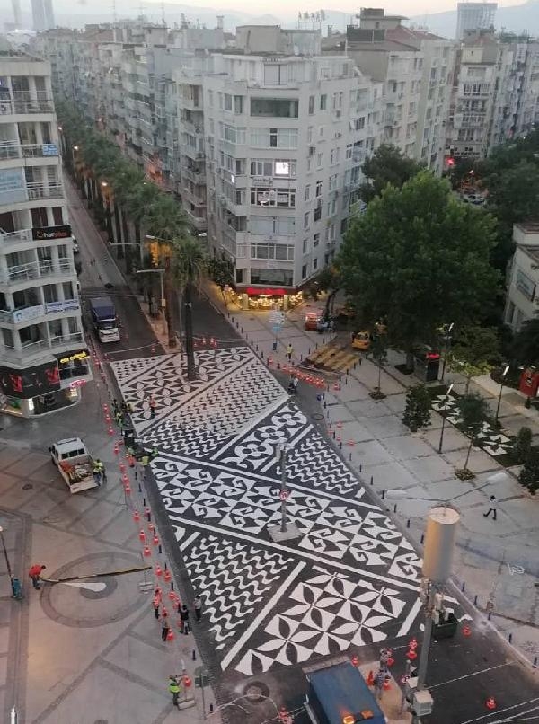 İzmir Büyükşehir Belediyesi proje kapsamında kentte yaya trafiğinin en yoğun olduğu bölgelerden Alsancak Talatpaşa Bulvarı'nın Kıbrıs Şehitleri Caddesi kısmında yayaların geçmesi için Avrupa'daki örneklerine benzer 34 metre uzunluğunda bir yaya platformu yaptı. Yükseltilmiş yaya geçidi üzerine İzmir'in tarihi köklerinden gelen figüratif desenler çalışıldı. Engelli ve yaşlı vatandaşların erişimi göz önünde bulundurularak yol ve kaldırımlar aynı seviyeye getirildi. Böylece alan mini bir meydan görünümü kazanırken yayaların kaldırımlara inip çıkmadan karşıya geçişi de sağlanmış oldu.
