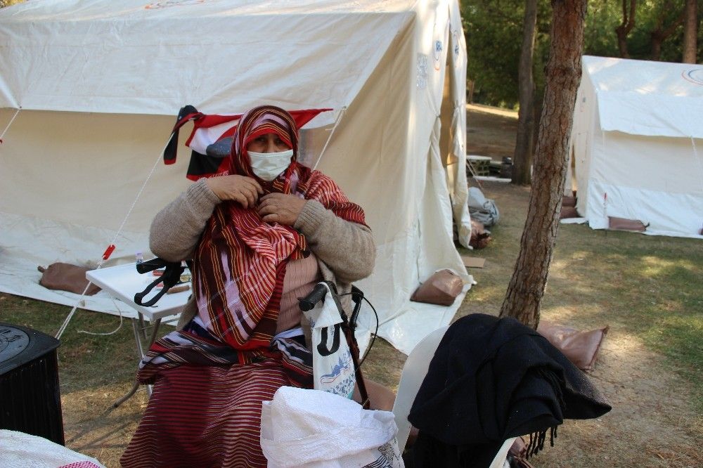 76 yaşındaki Arzu Özdel ise, "Virüs yüzünden dışarı çıkmamamız lazım ama çadırda da oturamıyorum. Evim yok, evim olsaydı evimde oturacaktım. Evim olursa evden çıkmayacağım. Çadırda nefes alamıyorum. Bu yüzden çadırın önünde oturuyorum. Evde olursam söz veriyorum içeride oturacağım" diye konuştu.