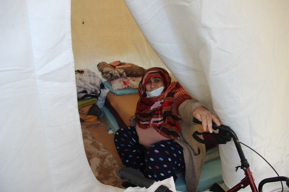 67 yaşındaki Kemal Atam, "Çadırda kalıyorum. Çatlak olduğu için evime giremiyorum. Burada gezmek yasak mı oldu? Karar ne zaman çıktı?" diye sorarken, 65 yaşındaki Zahide Atlı da, "Bizim evden çıkmamamız lazım ama evimiz yok. Çadırın yakınlarında duruyorum. Şimdi de yemek yemek için dışarı çıktım. Maskemi takıyorum, öyle çıkıyorum" ifadelerini kullandı.