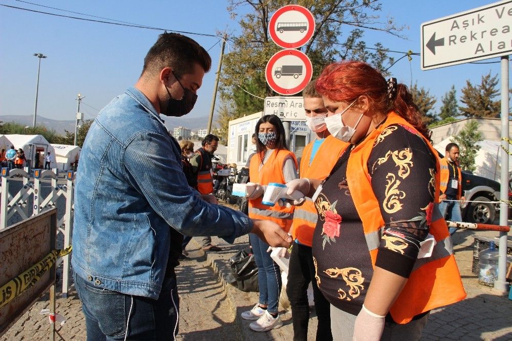 Öte yandan çadırların bulunduğu Aşık Veysel Rekreasyon Alanı'nda korona virüs tedbirleri dikkat çekti. Alana giren herkese ateş ölçümü yapılıp dezenfektan sıkılırken, yeni maske veriliyor.