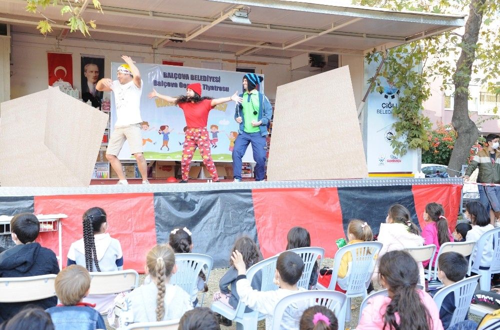 İzmir'de geçtiğimiz hafta meydana gelen deprem sonrasında, çadır kentlerde kalan çocuklara moral vermek isteyen Balçova Belediyesi Gençlik Tiyatrosu harekete geçti. Çocuklar için oluşturulan aktivite alanında gerçekleştirilen oyundaki sanatçılar, çocukların yaşadıkları korkuyu unutturmak için müzikli oyun sahneledi. Depremde büyük korku yaşayan miniklerin zaman zaman katıldıkları oyundan sonra da Balçova Belediyesi ekipleri çocuklara; boya, kitap ve defter dağıttı. Balçova Belediye Başkanı Fatma Çalkaya, belirli aralıklarla çocuk oyunları sahnelemeye devam edeceklerini ifade etti.