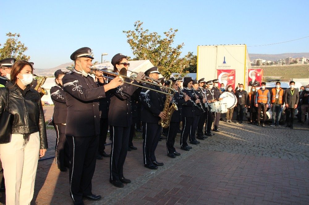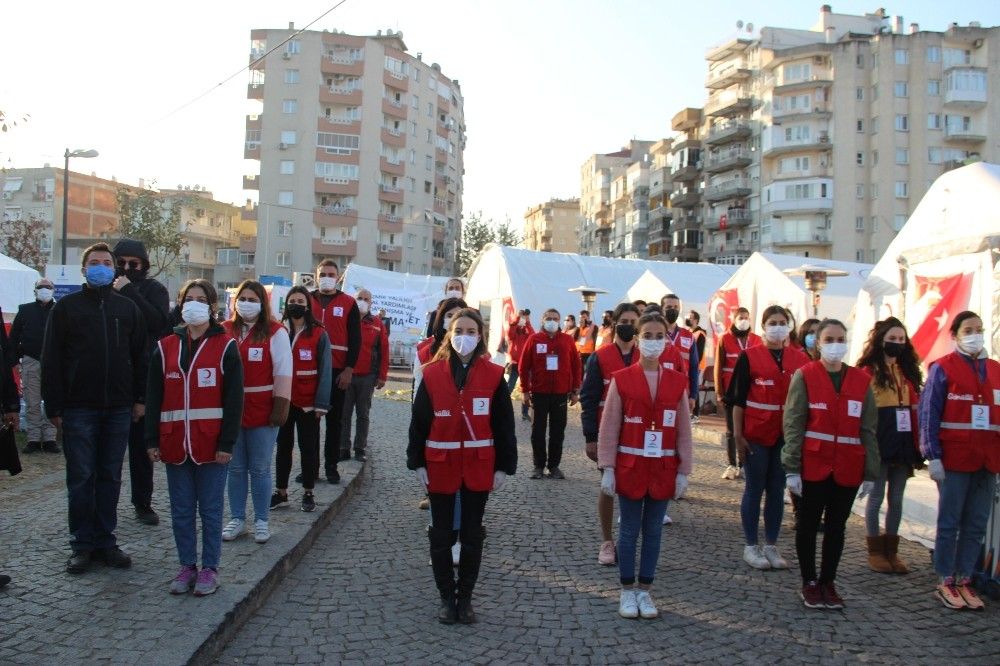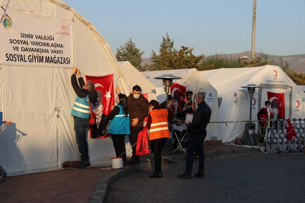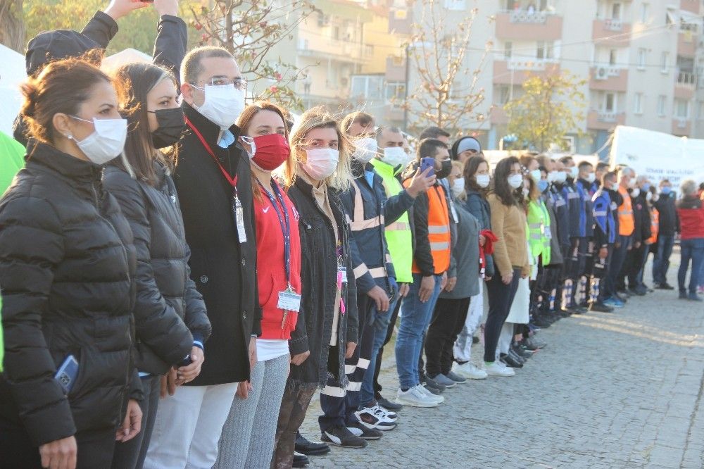 İzmir depreminden sonra çadır alanlarında kalan depremzedeler, Atatürk'ün 82. ölüm yıldönümü nedeniyle çadırlarına Türk bayrağı astı, saat 09.05'te tüm çadırkent görevlileri ile birlikte saygı duruşunda bulunup İstiklal Marşı okudu