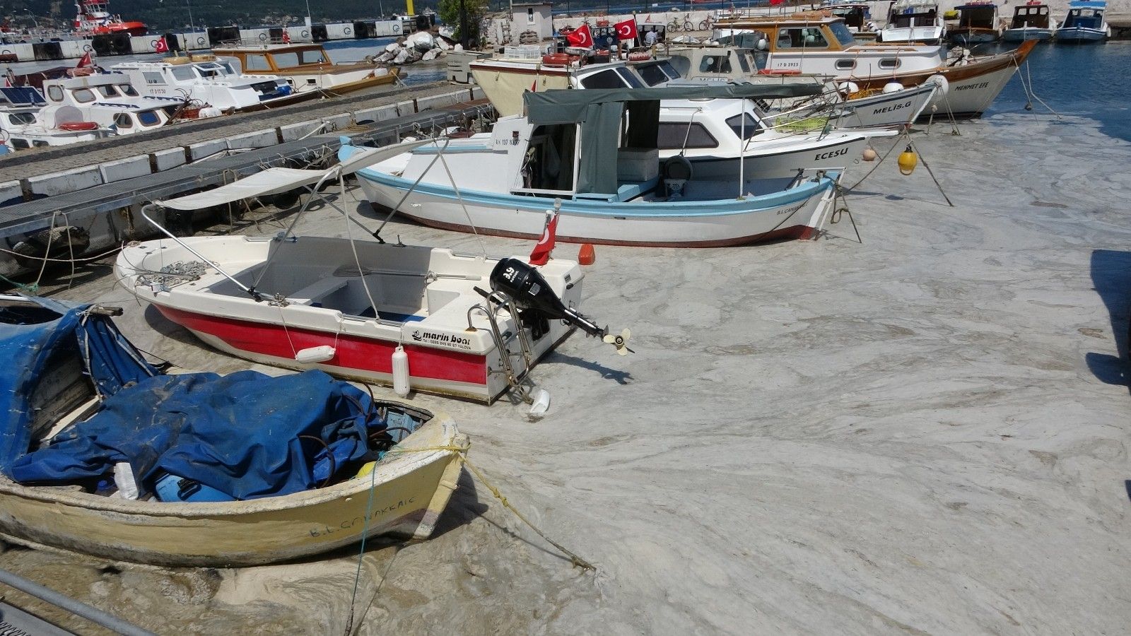 Çevre ve Şehircilik Bakanlığı öncülüğünde başlatılan Marmara Denizi Eylem Planı çerçevesinde Marmara Denizi'nden Kuzey Ege'ye kadar ilerleyen müsilaja karşı geçtiğimiz salı günü temizlik seferberliği başlatılmıştı. Denizlerin müsilajdan temizlenmesi için bugün de Yat Limanı'nda çalışmalar sürüyor. Su motorları ve belediyeye ait vidanjörler ile liman içinde su üzerinde biriken beyaz ve yapışkan tabaka çekiliyor.