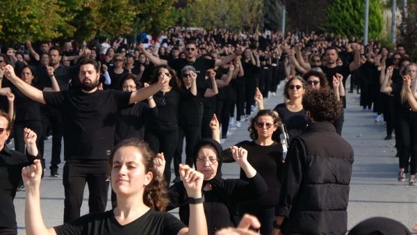 ÇANAKKALE'de, Cumhuriyet'in 100'üncü yılın nedeniyle Çanakkale Onsekiz Mart Üniversitesi (ÇOMÜ) öğretim üyesi ve öğrencilerinden oluşan 2023 kişilik ekip zeybek oynadı.