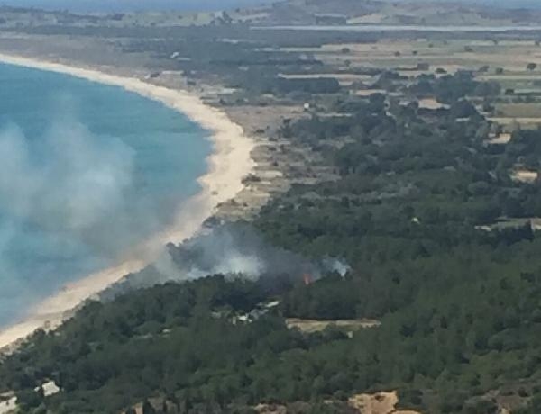 ÇANAKKALE'nin Eceabat ilçesindeki Anzak Koyu mevkisinde bir kamyonda çıkan yangın, ormana da sıçradı. Tehlike arz ettiği belirtilen yangına, havadan ve karadan müdahale sürüyor.
