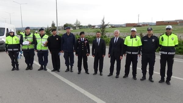 Durdurulan araçların sürücüleri ile yolcularını başta emniyet kemeri takma olmak üzere trafik kuralarına uymaları konusunda uyaran Vali İlhami Aktaş, sürücülere, 'Bayramınız kemerli olsun' yazılı broşürleri dağıttı. Sürücüler ve araçta bulunan yolcularla sohbet eden Aktaş, çocuklara da şapka ve kırmızı düdük hediye etti.