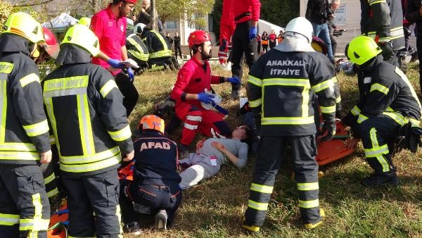 Çanakkale Onsekiz Mart Üniversitesi Terzioğlu Yerleşkesi ÇOMÜ Sağlık Bilimleri Fakültesi bahçesinde düzenlenen 'Geniş Katılımlı Uçak Kaza Tatbikatı'; Devlet Hava Meydanları İşletmesi (DHMİ) koordinesinde AFAD İl Müdürlüğü, İl Emniyet Müdürlüğü, İl Sağlık Müdürlüğü, Çanakkale Belediyesi, İtfaiye Müdürlüğü, Kızılay, THY İstasyon Şefliği, Çanakkale Onsekiz Mart Üniversitesi (ÇOMÜ) Acil Yardım ve Afet Yönetimi Bölümü (AYAY) iş birliğinde yapıldı. Tatbikata 149 görevli personel katılırken, yaralıları ve kazazedeleri 133 ÇOMÜ AYAY öğrencisi canlandırdı.