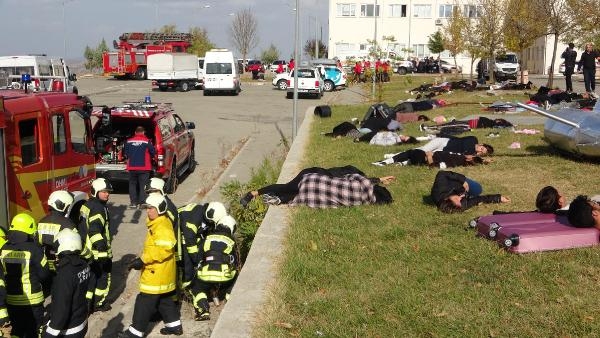 Tatbikat Hazırlık Komisyonu'nun hazırladığı senaryoya göre; TK15479 sefer sayılı Çanakkale-Çumra seferini yapan, içerisinde 88 yolcu ve 6 mürettebatı bulunan Boeing 737-800 tipi uçak, teknik arıza nedeniyle fakültenin bahçesine düştü. Kazadan kısa bir süre sonra bölgeye çok sayıda ambulans, itfaiye, polis, AFAD, UMKE ve Kızılay ekibi yönlendirildi. Uçak enkazından 55 yolcu ölü olarak çıkartılırken, 39 yolcu ile kurtarma çalışmalarında yaralanan 8 kişi de sağlık ekiplerince tedavi altına alındı. Yaralıların ambulansla hastaneye sevk edilmesi ve uçak enkazının kaldırılmasının ardından tatbikat sona erdi. (DHA)