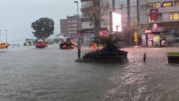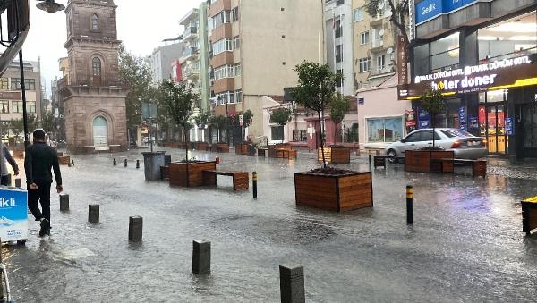 Çanakkale'de uyarı sonrası sağanak etkili oldu; kent merkezinde cadde ve sokaklar su ile doldu.