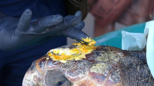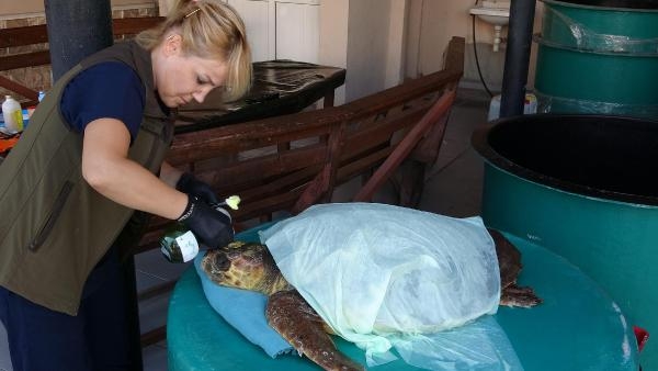 ÇANAKKALE'nin Gökçeada ilçesine bağlı Eşelek köyü kıyılarında başından yaralı halde bulunan caretta caretta türü deniz kaplumbağası tedavi altına alındı. Doğa Koruma ve Milli Parklar (DKMP) Çanakkale Şube Müdürü Ozan Hacıalioğlu, "Caretta carettanın bakım, tedavi ve rehabilitasyonuna başlandı, beslenmesine dikkat etmeye çalışıyoruz. Kafa kemiğinde bir kırık var. Kaplumbağamızı ameliyata alacağız, kafasındaki kırılan kemiği onarmaya çalışacağız" dedi.