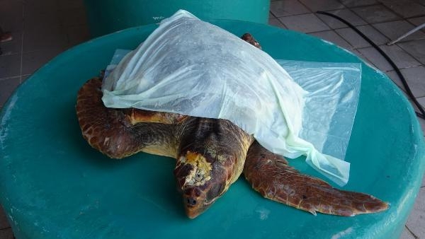 Çanakkale'de yaralı bulunan caretta carettaya tedavi