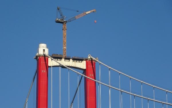 1915 ÇANAKKALE Köprüsü'nde, Seyit Onbaşı'nın sırtında taşıdığı top mermisini sembolize eden ve her biri 75 ton olan 4 anıtsal yapının konulacağı kaideler, kulelere kurulmaya başlandı.