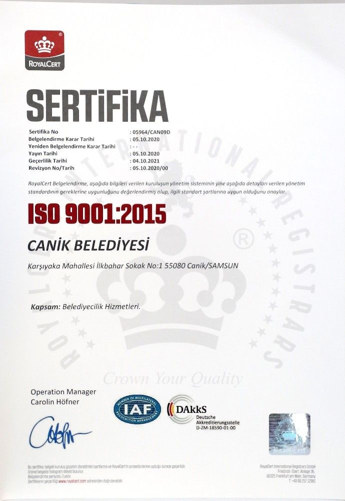 Canik Belediyesi, ISO 9001:2015 Kalite Yönetim Sistemi standartlarının gereklerine uygun olarak Kalite Yönetim Belgesi aldı