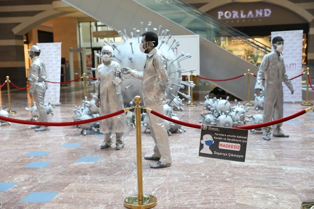 Korona virüs salgınından korunmak için önem taşıyan maske, sosyal mesafe ve hijyen kurallarına da dikkat çeken sanatçılar, izleyenlerin beğenisini kazandı. Vatandaşlar performans sergilenirken sanatçılarla hatıra fotoğrafı çekti. Canlı heykel performansı, korona virüse dikkat çekmek için 8 Kasım Pazar günü Ninova AVM'de, 14 Kasım Cumartesi günü ise Ceylan Karavil AVM'de 15:00 ile 16:00 saatleri arasında sergilenecek.