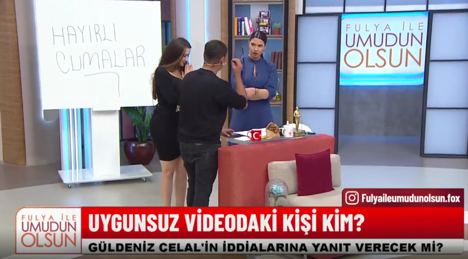 FOX TV'de Fulya Öztürk'ün sunduğu 'Fulya ile Umudun Olsun' programına katılan Celal Bilgin, eşi Güldeniz Bilgin'e ait olduğunu öne sürdüğü cinsel içerikli bir video izletti.