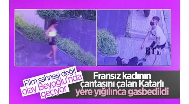 Otele gittiği Fransız bir kadının çantasını çalan Katarlı genç, kaçış sırasında merdivenlerden düşünce yakalandı. Kadının tekmelerle dövdüğü hırsız, saniyeler sonra başka bir hırsızın hedefi oldu.