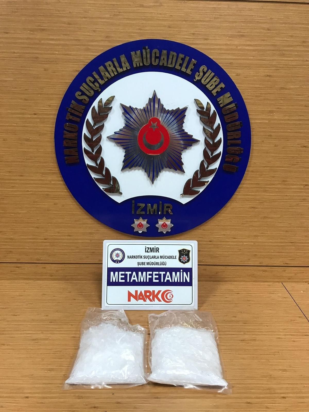 İzmir İl Emniyet Müdürlüğü Narkotik Suçlarla Mücadele Şube Müdürlüğü ekipleri, uyuşturucu madde ticareti yapan şahıslara yönelik gerçekleştirilen çalışmalar sonucunda, şüphelendiği bir motosikleti takibe aldı. Takip edilen motosiklet sürücüsü, Kemalpaşa ilçesindeki yol kontrol noktasında durduruldu. Burada narkotik köpeği motosiklet ve sürücünün çantasında arama gerçekleştirirken, çanta içerisine gizlenmiş, toplam 1 kilo 8 gram metamfetamin maddesi ele geçirildi.