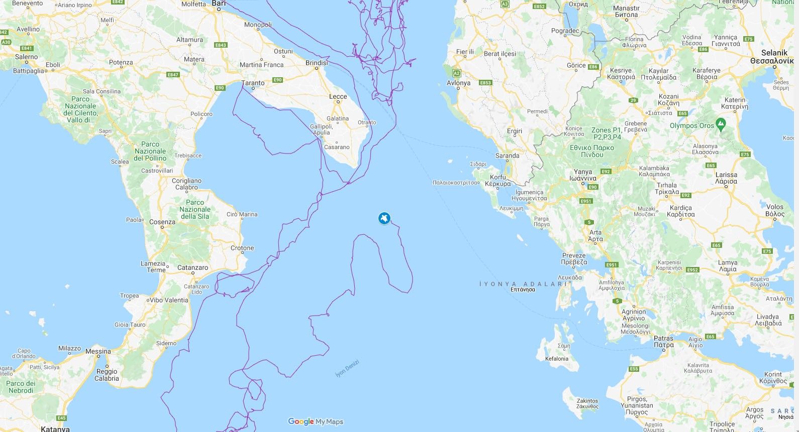 Muğla'daki Deniz Kaplumbağaları Araştırma, Kurtarma ve Rehabilitasyon Merkezi (DEKAMER) görevlileri tarafından 2019'da uydu takip cihazı takılarak denize bırakılan caretta caretta, 2 yılda 10 bin kilometre yol kat etti.