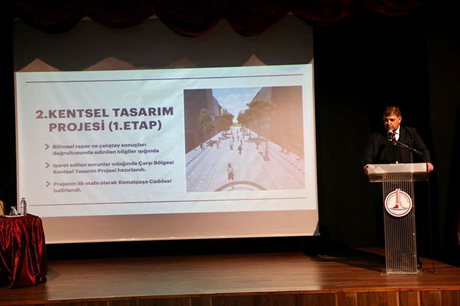 Karşıyaka Belediye Başkanı Dr. Cemil Tugay konuşmasında şunları kaydetti: “2022’nin ilk aylarında Kemalpaşa Caddesi’nde projeye start vereceğiz. Çarşının üniversite tarafından yapılan analizinde insanların şikayet ettiği problemler belirlendi. En çok şikayet edilenler; zeminin bozukluğu, dükkanların önündeki karmaşa ve bunun yarattığı kalite düşüklüğü. Bu proje; çarşıya düzen ve kalite getirmek amacıyla yapılan bir çalışma olacak. En çok şikayetin de yoğunlaştığı alan Kemalpaşa Caddesi ana cadde, etaplandırdığımız zaman ilk önce buradan başlamanın uygun olduğuna karar verdik. Çalışmayı katmanlar halinde düşünelim, zemin ve zemin üzerindeki kent mobilyaları gibi tabakalar var ama daha büyük sorun zeminin altında. Banka Sokağı Salah Birsel’de yapılan sokak revizyonu çalışmasından yeni bilgiler edindik. Çalışma sırasında alt yapıya ulaşıldığı zaman karşılaştığımız görüntü iyi değildi. Aynı şeyin ana cadde de olmasını da bekliyoruz. Genel olarak yenileme ihtiyacı çok olacak, bu fırsatla onu da yapmış olacağız. Buna ek olarak binaların dış cephe çalışmaları var. Üniversite hocaları uzun süre çalışarak binaları ayrı ayrı değerlendirdikleri analizleri bizlere sundular. Çok değerli tarihi binalarımız var. Bu binalara çok özensiz davranılmış. Bunlarla ilgili etkili kararlar alacağız. Kemalpaşa Caddesi’ni, en hızlı ve en az mağduriyet yaratacak şekilde planlama yaparak, zemini tamamen kaldırıp yer altı çalışması yapacağız. Çarşının bize düşen kısmını yaptıktan sonra, esnafımız ile çalışacağımız bölümü onlarla beraber yapacağız. Birbirimizi doğruları yapma konusunda uyararak, doğrunun ne olduğunu birlikte bulmak lazım. Karşıyaka çarşıda şu an şikayet edilen ana konu kalitenin düşüklüğü. İnsanların aradığı şey çarşının hak ettiği tarihsel kimliğin getirdiği kaliteyi yakalamak. İzmir gelişiyor ama çarşı iyiden kötüye doğru gidiyor. O yüzden kalitenin ne olacağını belirlemek lazım. Benim kendi adıma isteğim, çarşının daha kaliteli bir yer olması yönünde.”