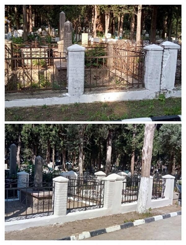 MANİSA Büyükşehir Belediyesi tarafından Çatal Mezarlığı'nda yapılan bakım, onarım ve temizlik çalışmalarının tamamlanmak üzere olduğu bildirildi. Ekipler, mezarlıktakie yabani otları biçip, ağaçları budarken, tarihi mezarların da tamir ve boyama işlemlerini de yaptı. Manisa Büyükşehir Belediyesi Mezarlıklar Dairesi Başkanı Aydoğan İra, "İl genelinde kayıtlı 2 bin 500 mezarlık var. Hepsine dokunmaya çalışıyoruz" dedi.