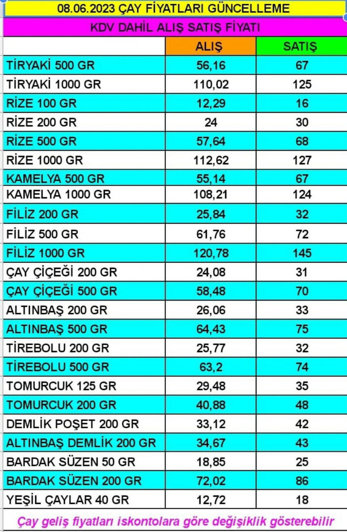 2023 yaş çay alım fiyatının yüzde 64 artışla destek primi dahil kilogramda 11.30 TL olarak açıklanmasının ardından Çaykur, kuru çay fiyatlarında artışa gitti.