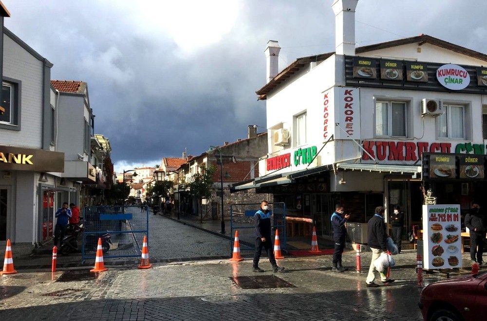 İzmir'in Çeşme ilçesinde, çarşı girişlerine korona virüsü tedbirleri kapsamında bariyerler yerleştiren ekipler sıkı tedbirler almaya başladı.