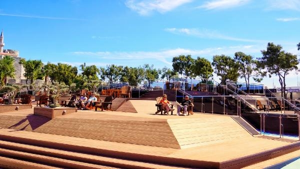 Çeşme'de kaçak yapılar tarafından işgal edilen sahilde meydan düzenlemesinin son etabı gerçekleştirildi. Çeşme Belediye Başkanı M. Ekrem Oran, meydan çalışmalarını tamamlayarak, Güneşlenme Terasları ile Cumhuriyet Meydanı'nı denizle buluşturdu. Toplam 1500 metrekare alanda, içerisinde 8 tane Anıt Zeytin Ağacı olan Güneşlenme Terasları'na ahşap koltuklar yerleştirildi. Kompozit deck kaplama yapılan alanda çevre ve peyzaj düzenlemeleri yapıldı. Güneşlenme Terasları ile Cumhuriyet Meydanı'ndan denize girilebilecek. Çeşme Belediye şirketi ÇEŞTUR A.Ş. bünyesinde açılan Teras Kafe ile de vatandaşlar keyifli vakit geçirebilecek. Çeşme Kalesi'ni denizle ve mavi ile buluşturan Oran, "Her şey söz verdiğimiz gibi. Cumhuriyet Meydanı'ndan vatandaşlarımız artık denize girebilecek. Teras Kafe'de 3 liraya çay, 6 liraya kahve içebilecek. Güneşlenme Teraslarımız Çeşmemiz'e çok yakıştı, hayırlı ve uğurlu olsun" dedi. (DHA)