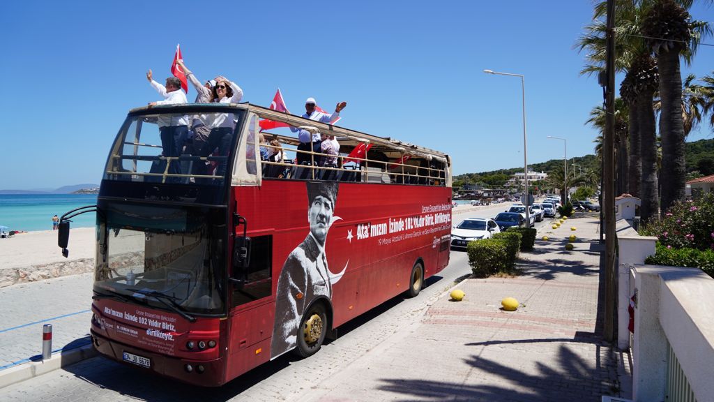 Mustafa Kemal Atatürk’ün Samsun’a çıkarak milli mücadele fitilini ateşlediği 19 Mayıs 1919’un 102. yılı Çeşme’de bu yıl da büyük bir coşkuyla kutladı. Başkan Oran, gün boyu cadde ve sokaklarda üstü açık otobüsle araç konvoyu yaparak plajda denize giren ve evlerinde balkonlara çıkan vatandaşları tek tek selamladı.