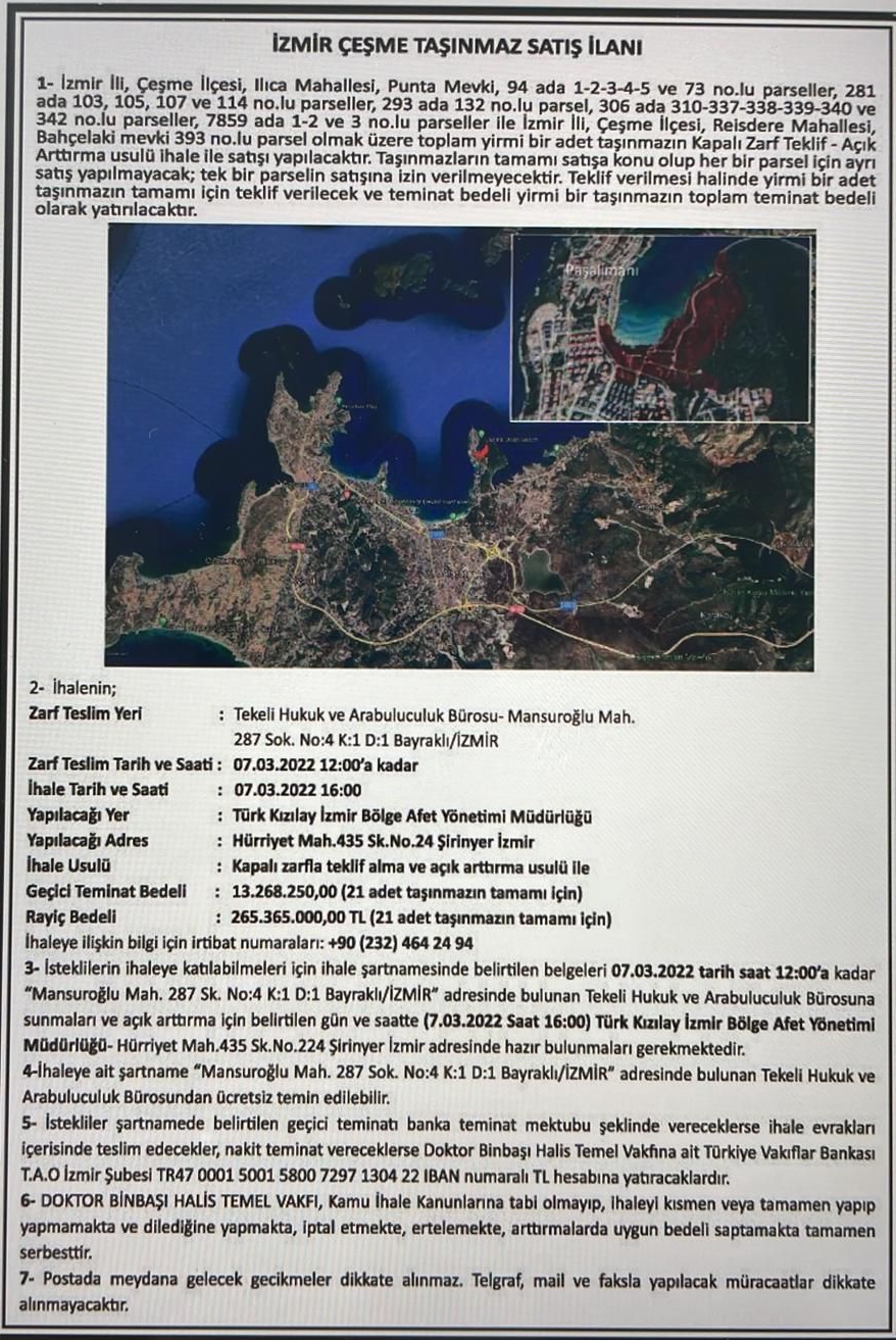 Çeşme’nin muhteşem koylarından biri olan eski Vkamp’ın olduğu arazinin satışı için 7 Mart 2022 tarihinde ihale yapılacağı duyuruldu. İhaleye çıkan kurumun arazinin sahibi Doktor Binbaşı Halis Temel Vakfı olduğu öğrenildi. Bu bölgenin hikayesi şöyle: