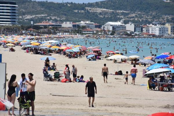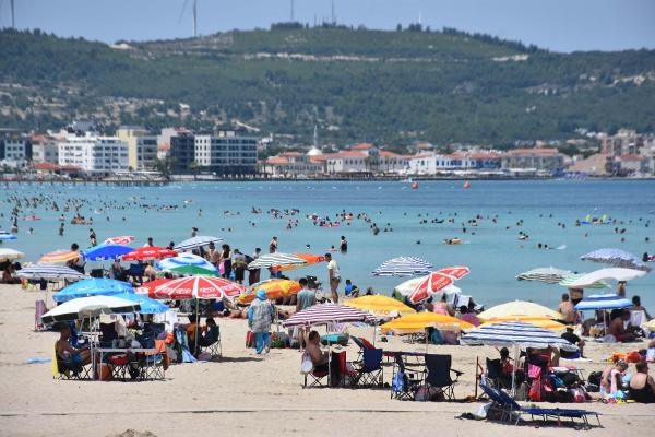 İZMİR'in gözde turistik ilçesi Çeşme'de Kurban Bayramı tatilinde yaşanan yoğunluk son günde de devam etti. Nüfusun 1 milyonu aştığı ilçede dünyaca ünlü Ilıca Plajı'nda yoğunluk oluşurken, esnaf ise bu durumdan mutlu olduklarını söyledi.