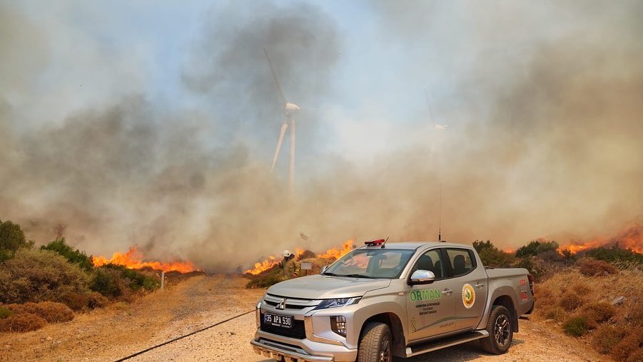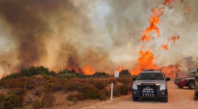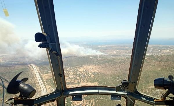 İZMİR'in Çeşme ilçesinde makilikte yangın çıktı. Alevlere havadan ve karadan müdahale ediliyor.