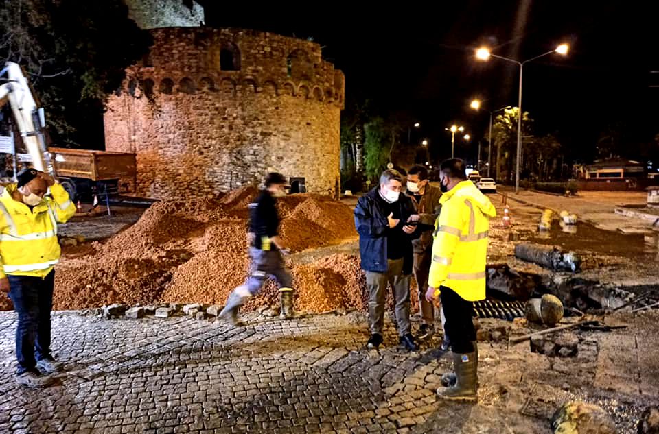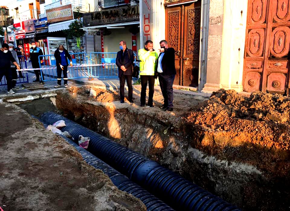 Çeşme Belediyesi önündeki yolda bulunan ve çarşıdan gelen yağmur suyunu denize aktarmakta yetersiz kalan borular, Çeşme Belediyesi ve İZSU'nun bir ay kadar süren çalışmasıyla değiştirildi.