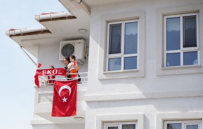 Her milli bayramda olduğu gibi bu 23 Nisan için de Çeşme sokakları bayraklarla donatıldı. Marşlarla belediye hizmet binasından hareket eden korteje, balkon ve pencerelerde vatandaşlar da eşlik etti. Cadde ve sokaklara inen vatandaşlar hem bayrak salladı hem o anları cep telefonu kamerası ile görüntüledi.
