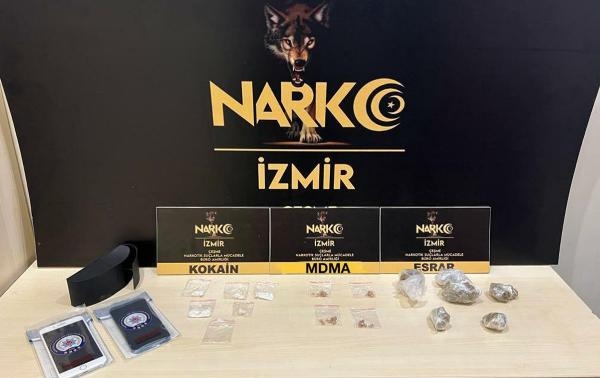 İzmir'in Çeşme ilçesinde polisin durdurduğu otomobilde 46 gram esrar, 6 gram kokain, 5 gram ecstasy uyuşturucu hapla yakalanan 2 kişi gözaltına alındı. İşlemlerinin ardından adliyeye sevk edilen şüpheliler tutuklandı.