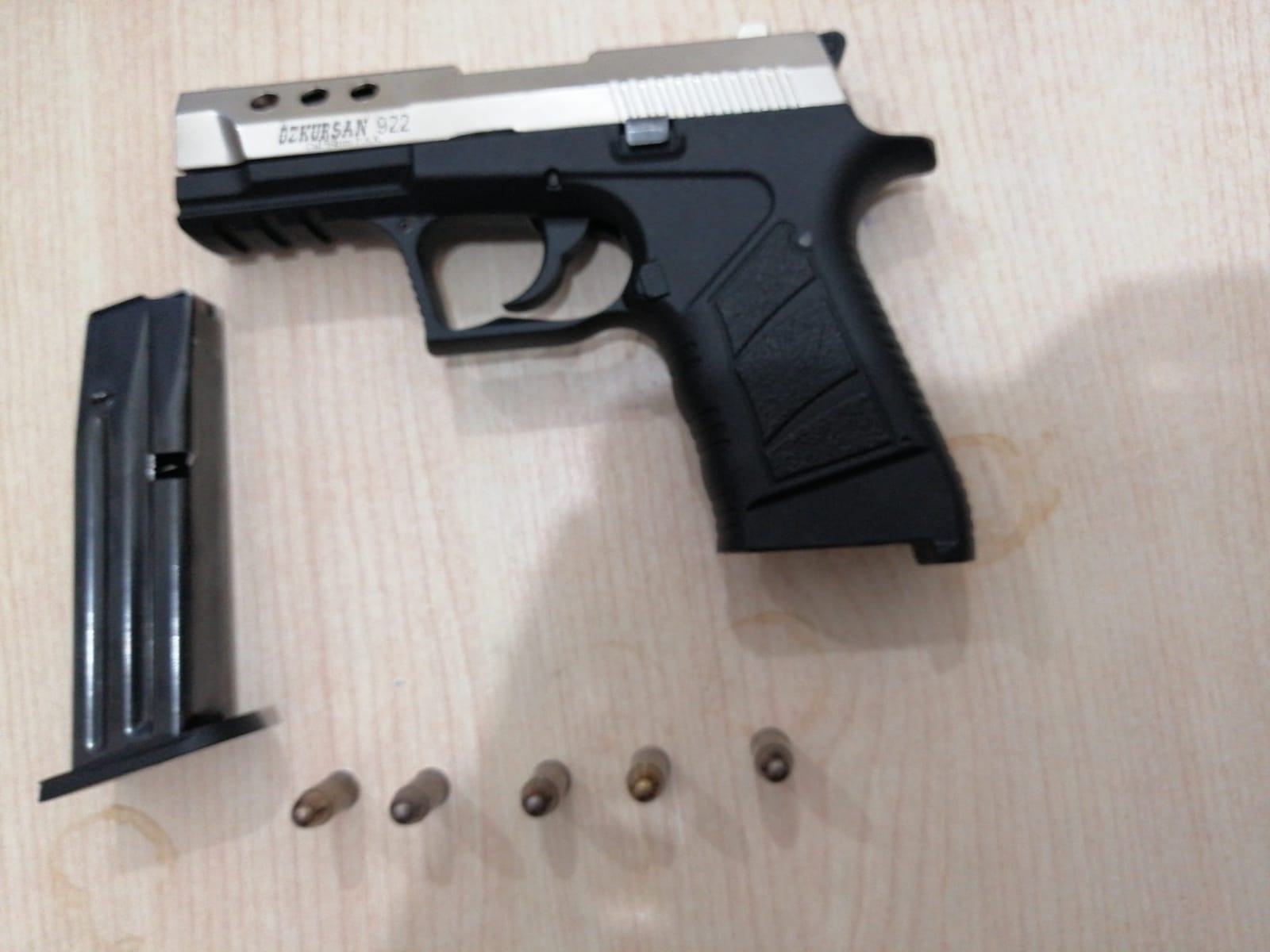 ▪️1 adet 7.65 mm çapında ruhsaksız tabanca ve bu tabancaya ait 5 mermi