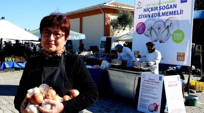 Çeşme'nin yöresel beyaz soğanını tanıtmak, tüketimi arttırmak ve yerli üreticiye destek olmak amacıyla, "Soğan tarlada kalmasın, sofralarınızda olsun" projesi kapsamında Ilıca Pazarı'nda, "soğan kavurma etkinliği" gerçekleştirildi.