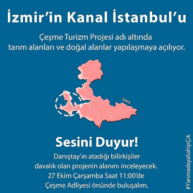 İzmir’in yarımada olarak adlandırılan Çeşme, Urla, Seferihisar ve Karaburun ilçeleri ekolojik ve tarihsel açıdan önemli bir bölge. Yarımadanın doğası uzun süredir siyasi iktidar eliyle yok edilme tehlikesiyle karşı karşıya. Dağlar, tepeler rüzgar enerji santralleriyle mermer ve taş ocaklarıyla dolu. Şimdi de “Çeşme turizm projesi” adı altında yürütülen yeni bir ekolojik saldırı ile karşı karşıya.