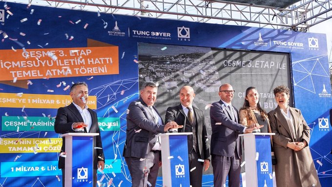 Soyer, "Yaz aylarında 1 milyona yaklaşan nüfusuyla Çeşme, her yıl Türkiye'nin ve dünyanın dört bir yanından gelen ziyaretçileri ağırlıyor. İlçemizin bu çok özel durumu uzun yıllardır içme suyu, kanalizasyon ve arıtma altyapısına özellikle yaz aylarında ciddi bir yük oluşturuyordu. İzmir'in her ilçesine, her mahallesine sağlıklı su ve dirençli bir altyapı sağlama hedefimiz doğrultusunda İZSU Genel Müdürlüğü'müzle Çeşme'de yatırım seferberliği başlattık. Kaçaklara, kokuya, arıza ve kesintilere neden olan Çeşme'nin altyapı sorunlarını kökten çözecek tüm adımları planladık" ifadelerini kullandı.