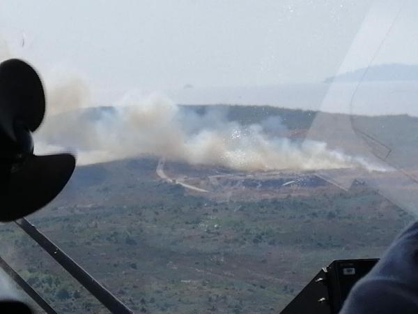 İzmir'in Çeşme ilçesinde dün çöplükte çıkıp otluğa sıçrayan yangının ilerlemesi, havadan ve karadan müdahaleyle durduruldu. Çöplükteki yangın sürerken, ekipler yangına karadan müdahale ediyor.