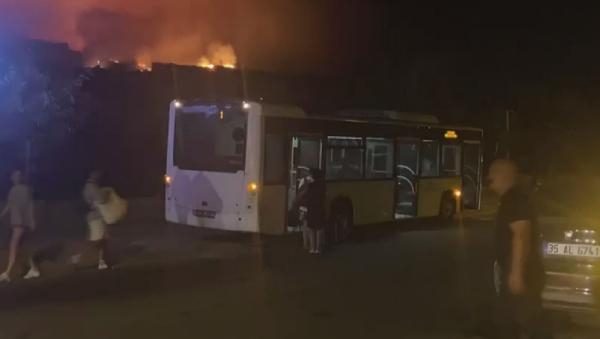 İzmir Valiliği Bornova Çocuk Destek Merkezi Müdürlüğü Çeşme Çocuk Gençlik Eğitim ve Dinlenme Kampı'ndaki öğrencilerin önlem için otobüslerle tahliye edildiği bölgede yangın kontrol altına alınırken detaylı soruşturma başlatıldı.