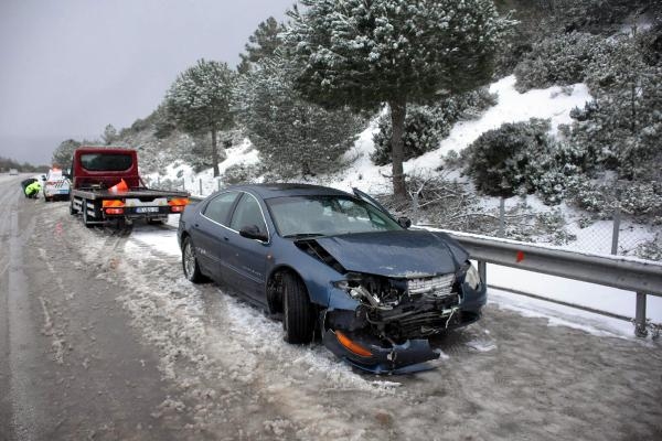 İZMİR'in Çeşme ilçesinde yüksek kesimlerde kar yağışı etkili oldu. Yağış nedeniyle İzmir-Çeşme Otoyolu'nda maddi hasarlı kazalar meydana geldi.