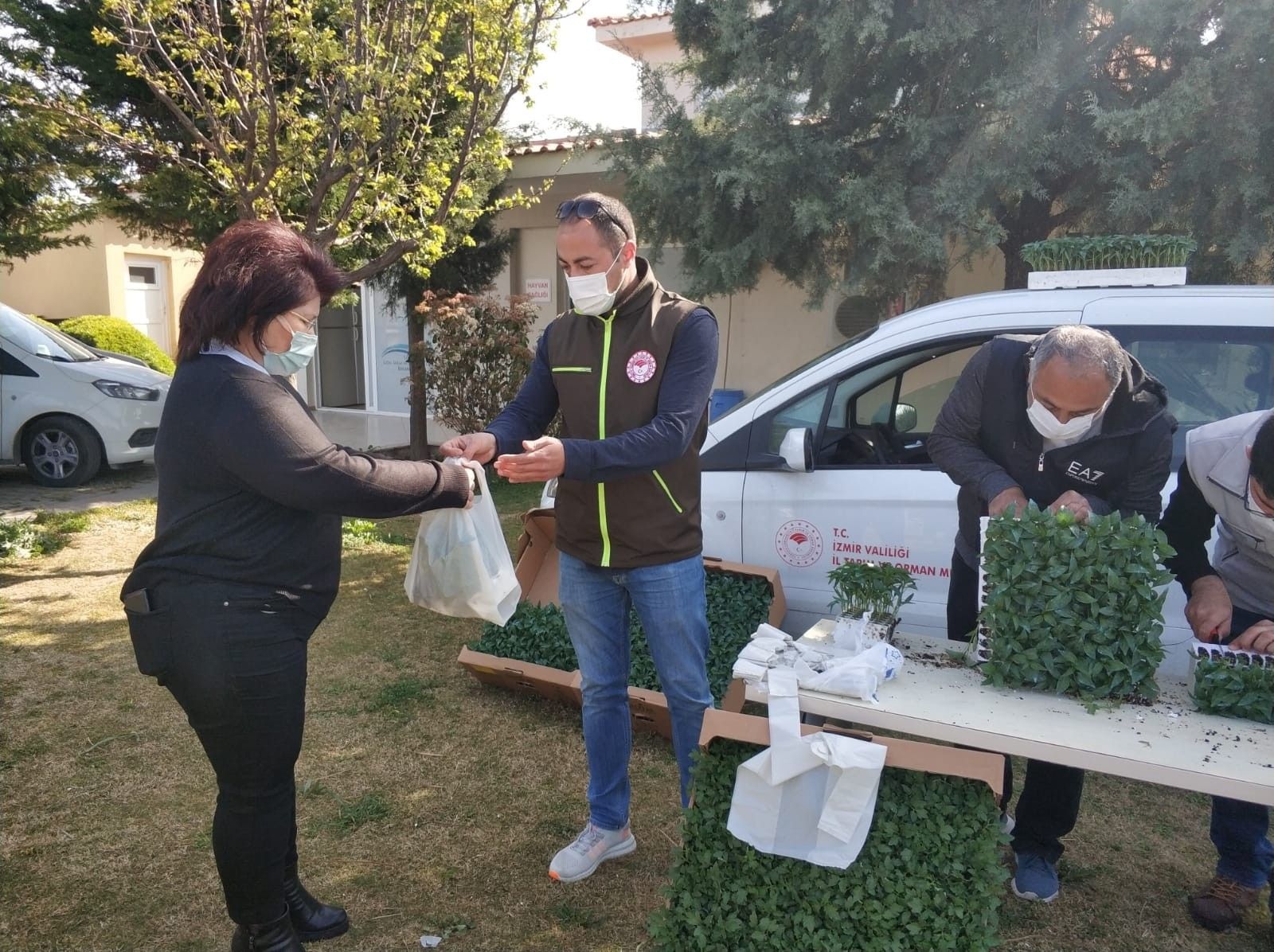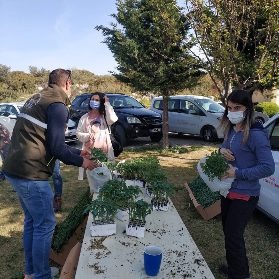 Çeşme İlçe Tarım ve Orman Müdürlüğü, Çeşmeli kadınlara ücretsiz olarak domates, biber, patlıcan ve salatalık fidesi dağıttı.