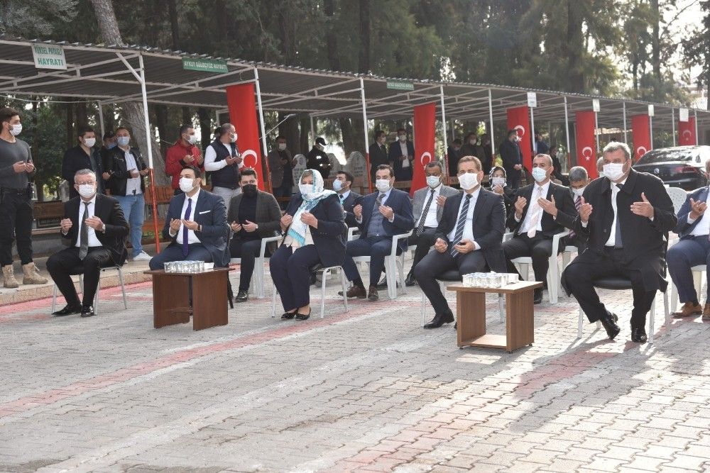 Cumhuriyet Meydanındaki törenin ardından Ceyhan Şehitliği'ndeki törene katılan protokol şehitlerin kabirlerine karanfil bırakarak dualar okudu.