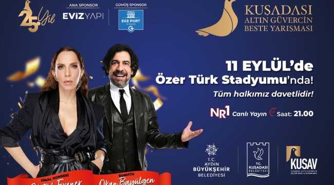 Aydın Büyükşehir Belediyesi, Kuşadası Belediyesi ve Kuşadası Altın Güvercin Kültür Sanat ve Tanıtım Vakfı (KUSAV) iş birliğiyle, Eviz Yapı ana sponsorluğunda düzenlenen, NR1 Türk TV ve Number 1 Türk FM’den canlı olarak yayınlanacak olan Altın Güvercin Beste Yarışması bu yıl 25’inci kez düzenlenecek. Çeyrek asırlık yolculuğu boyunca besteci ve yorumcular tarafından yakından takip edilen ve büyük ilgiyle karşılanan Altın Güvercin, düzenlendiği yıllar boyunca Türk pop müziğine pek çok değerli isim ve beste kazandırdı.