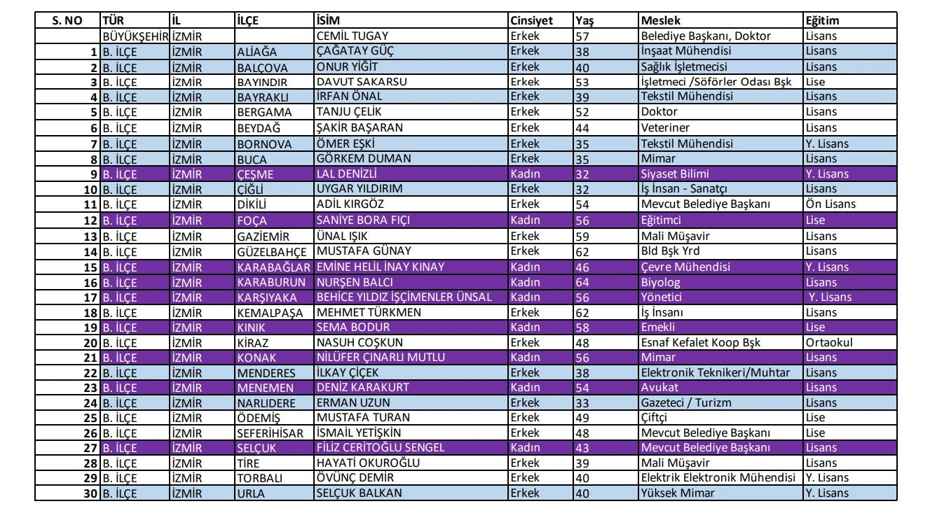CHP'nin aday belirleme sürecinde İzmir’den sadece 6 ilçe adayı belirlenmişti. Bergama’da Tanju Çelik, Kınık’ta Sema Bodur, Kiraz’da Nasuh Coşkun, Torbalı’da Övünç Demir, Bayındır’da Davut Sakarsu, Tire’de ise Hayati Okuroğlu 10 Ocak’ta yapılan Parti Meclisi (PM) toplantısında adaylaşmıştı.