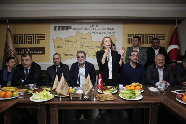 Daha sonra İzmir Mardinliler Federasyonu’nu ziyaret eden Mutlu, Federasyon Başkanı Ahmet Tunç, CHP Kızıltepe İlçe Başkanı İsmail Yaman, dernek üyeleri ve muhtarlar tarafından ilgiyle karşılandı. Dernek üyeleriyle çay içip sohbet eden Mutlu’ya çiğköfte ikramında da bulunuldu. Misafirperverlikleri için federasyon üyelerine teşekkür eden Mutlu, “Konak için yola çıktığım günden bu yana Mardinli dostlarım hep yanımda oldu. Ben bu seçimde sadece CHP’li Mardinlilerin değil bütün Mardinlilerin oyunu istiyorum. Çünkü sizlerle yan yana omuz omuza çok farklı bir Konak yaratacağımıza inanıyorum. Belediye meclislerinde o ilçede yaşayan her grubun temsil edilmesi gerektiğine inanıyorum. Mutlaka temsilcileriniz olacak aramızda. Sizler sorunlarınızı ve çözüm önerilerinizi kendi temsilcileriniz aracılığıyla bize ileteceksiniz ve bileceksiniz ki Konak sizlerin de temsiliyetiyle yönetilecek” diye konuştu.